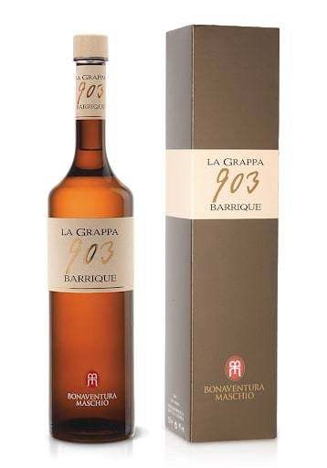 Grappa 903 Tipica Maschio Bonaventura cl 70 misto di vinacce a bacca rossa e bianca con bouquet di fieno appena raccolto e profumi di mele cotogne e pere selvatiche