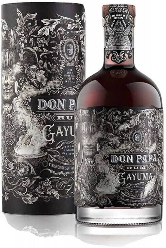 Rum Don Papa Gayuma cl 70 invecchia inizialmente per tre anni in ex botti di Bourbon, prima di essere affinato per sei mesi in botti di Rioja fortemente tostate finitura finale in botti di whisky Islay gusto olto complesso