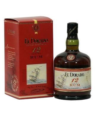 Rum Eldorado 12 anni cl 70 dal Guyana invecchiato in botti di rovere ex bourbon gusto rotondo e maturo con sentori di frutta tabacco e scorza d'arancia caratterizzato da una leggera dolcezza