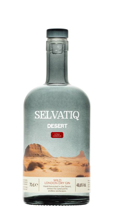 Gin Selvatiq Desert cl 70 prodotto con il ginepro Juniperus Osteospema che cresce nelle distese desertiche dello Utah e viene raccolto nel mese di settembre quando la concentrazione aromatica è al massimo ed altre spezie