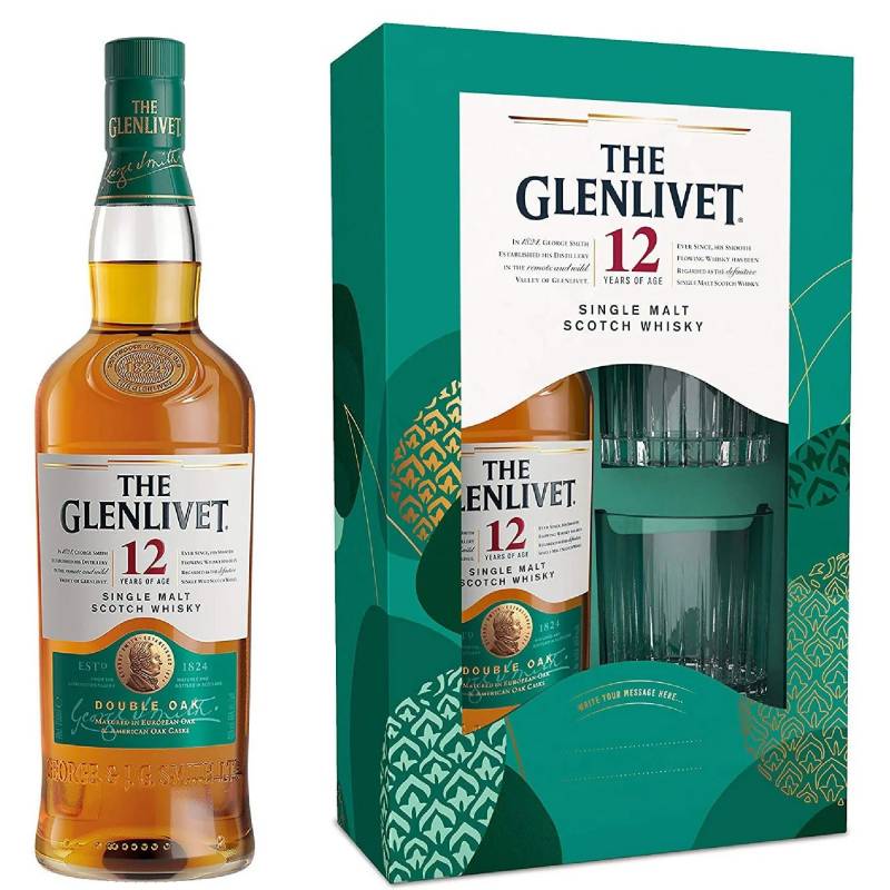 Whisky The Glenlivet 12 anni cl 70 e 2 bicchieri al palato si rivela il superbo malto dello Speyside morbido e pulito un dolce e armonioso equilibrio tra i dolci frutti estivi agrumi mela e fragranze floreali