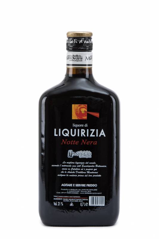 Liquirizia Notte Nera cl 70 dall'Antica Distilleria Mantovani liquore denso e vellutato ottenuto da selezionate materie prime profumo intenso e dal gusto persistente ottimo fine pasto da servire ghiacciato