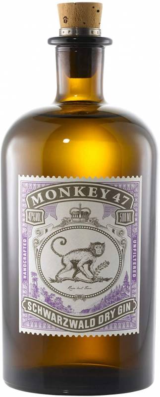 Gin Monkey cl 5 da 47 erbe e spezie con acqua rigorosamente della foresta nera doppia distillazione e invecchiamento in contenitori di terra cotta nessun filtraggio finale sapore armonico e deciso.