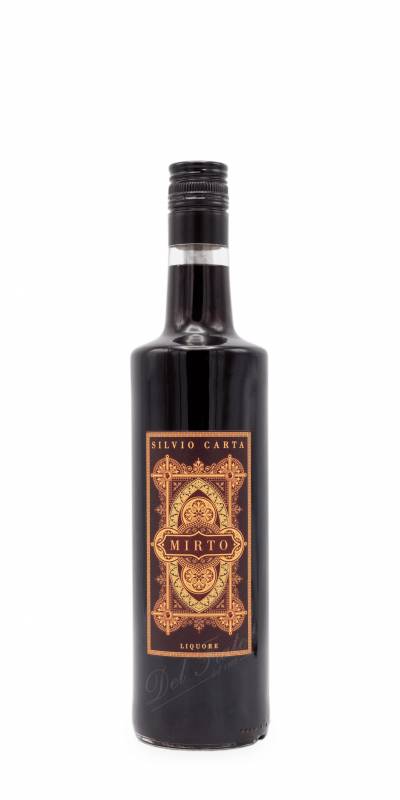 Mirto Rosso Carta cl 70 liquore a base di bacche mature ottenuto senza l'impiego di coloranti e aromi dal gusto amabile ottimo come dopo pasto va servito preferibilmente ghiacciato