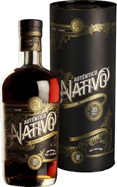 Rum Nativo Autentico 20 anni cl 70 prodotto a Panama matura 20 anni in botti di rovere ex bourbon gusto ricco, morbido speziato e dolce di quercia noci vaniglia ciliegie con finale di lungo e persistente