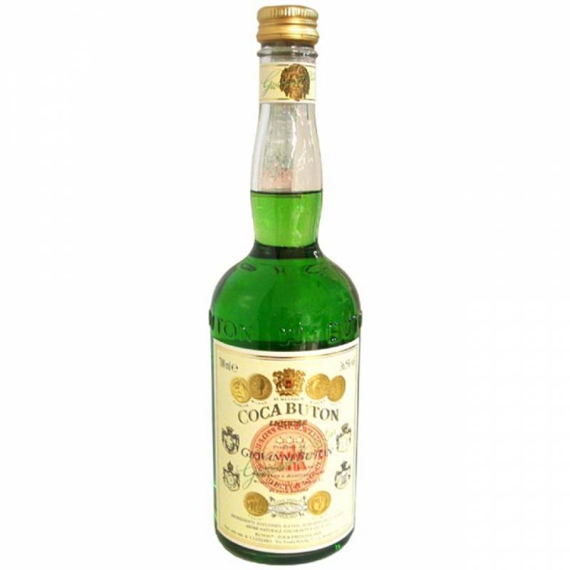 Coca Buton cl 70 liquore alle erbe distillato dai vari aromi melissa ortica artemisia assenzio e foglie della coca peruviana trattate come previsto dalle legge sapore forte e secco