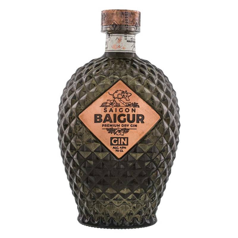 Gin Saigon Baigur cl 70 da Ho Chi Minh City composto dall’unione di 12 botaniche locali quali il Ginepro Mano di Buddha Fiori di Loto Cannella Semi di Coriandolo Radice di Angelica Noce Moscata Pepe Phu Quoc