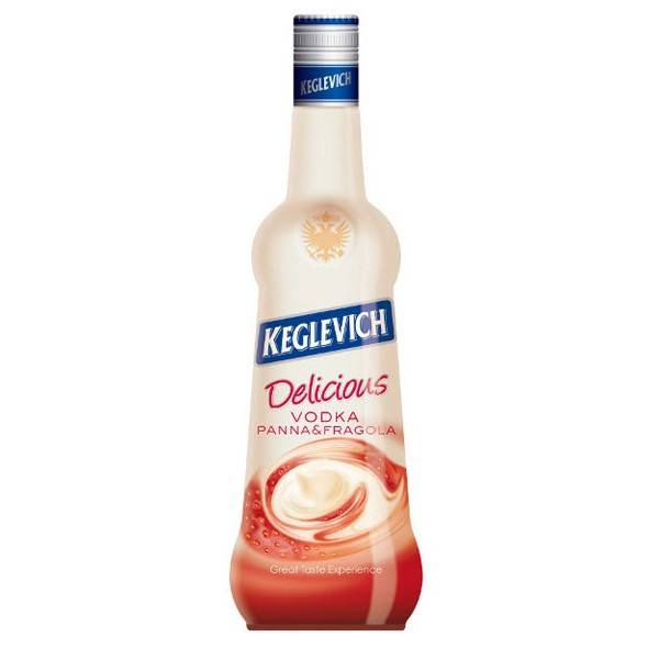 Vodka Keglevich Panna e Fragola cl 70 gusto cremoso dolce ed avvolgente adatta ad abbinamenti sfiziosi ottima a fine pasto con gelato e in alcuni cocktail
