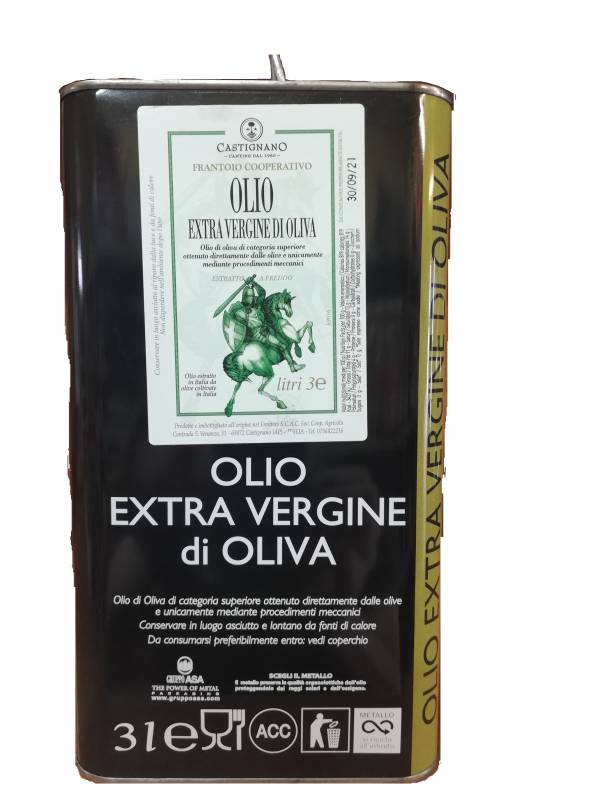 Olio extravergine di Oliva Cantine di Castignano latta 3 litri produzione delle olive conferite solo dai prorpi associati nel territorio piceno