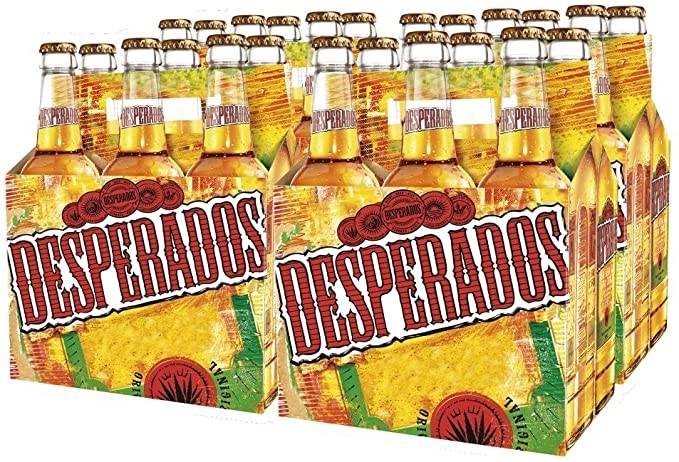 Birra Desperados cl 33 x 24 bottiglie francesce d'origine aromatizzata alla tequila al palato è morbida fresca con sensazioni di miele e caramello finale leggermente amaro e dal retrogusto di frutta secca