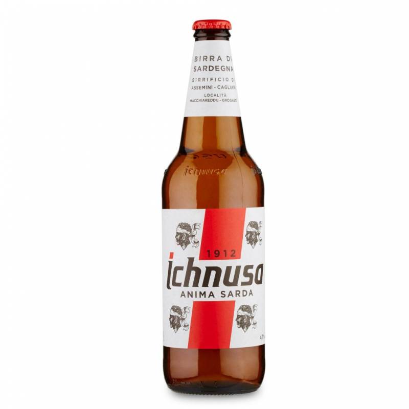 Birra Ichnusa cl 33 x 24 bottiglie dalla Sardegna a bassa fermentazione corpo medio e moderatamente frizzante gusto piacevolmente amaro ottima con stuzzichini di prosciutto piatti saporiti salsiccia alla brace