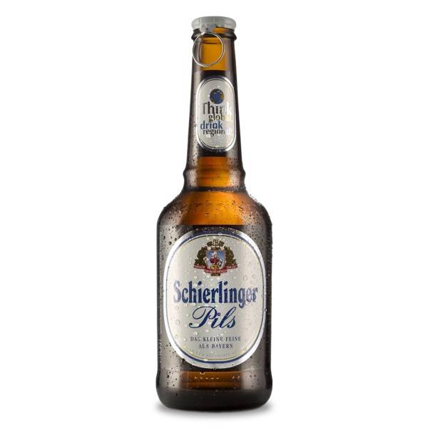 Birra Schierlinger bottiglia cl 50 pils dall'aspetto brillante e dorato al naso note erbose e floreali bevuta delicata ma anche piena rinfrescata dalla delicata nota di citronella finale luppolato ricco di gusto