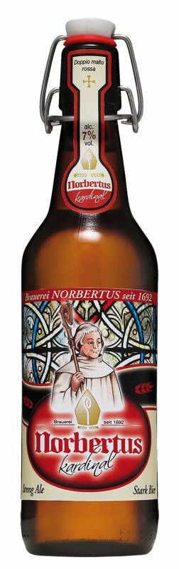 Birra Norbertus Kardinal cl 50 tappo meccanico doppio malto ambrata aroma persistente con note di marasca prugna e finale amaro adatta a salumi frittate carni e pesce alla griglia