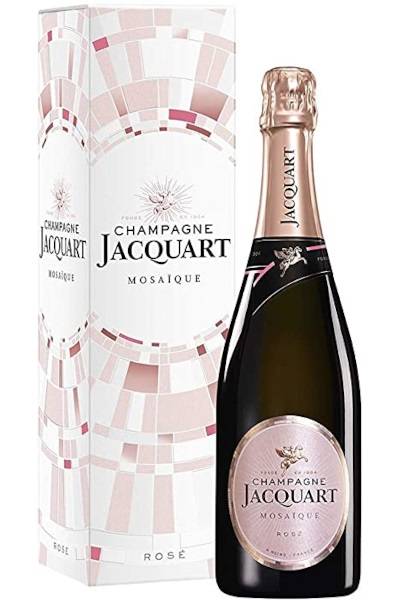 Champagne Jacquart Rosé cl 75 in astuccio al naso sentori di frutta, fragole selvatiche, frutti di bosco bollicina estremamente delicata che in bocca rivela una bella pienezza e una cremosità ideale per un aperitivo conviviale