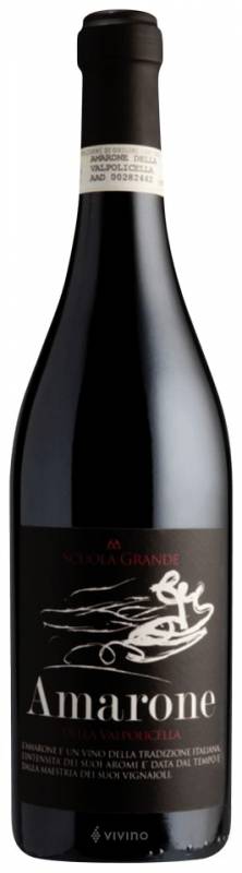 Vino Amarone della Valpolicella Scuola Grande cl 75 sapore potente caldo ampio ed avvolgente con leggera sensazione tannica ottimo con cacciagione di pelo e carni alla griglia