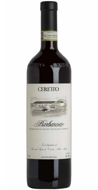 Vino Barbaresco Docg Ceretto cl 75 da uve Nebbiolo 100% vinificate in purezza gusto asciutto pieno robusto aspro ma armonioso adatto a carni rosse saporite