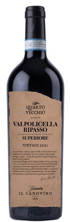 Vino Ripasso Valpolicella Superiore Canovino cl 75 riposa in botte 12 mesi e 12 mesi in bottiglia gusto armonico, morbido con retrogusto amarognolo ottimo con grigliate di carne, con risotti autunnali e pasta e fagioli