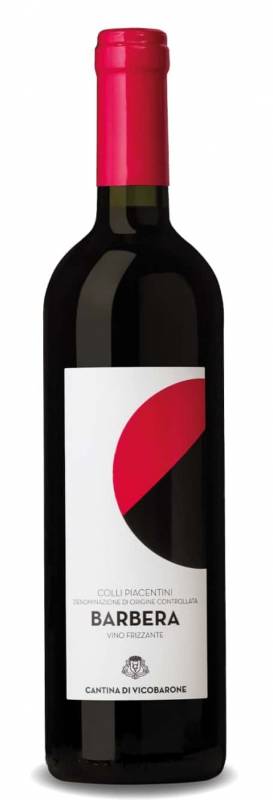Vino Barbera frizzante Vicobarone cl 75 dalle bollicine fini evanescenti gusto poco sapido e tannico molto versatile nell'abbinamento che spazia dai risotti alle paste al sugo dagli stufati ai bolliti ed alla cacciagione