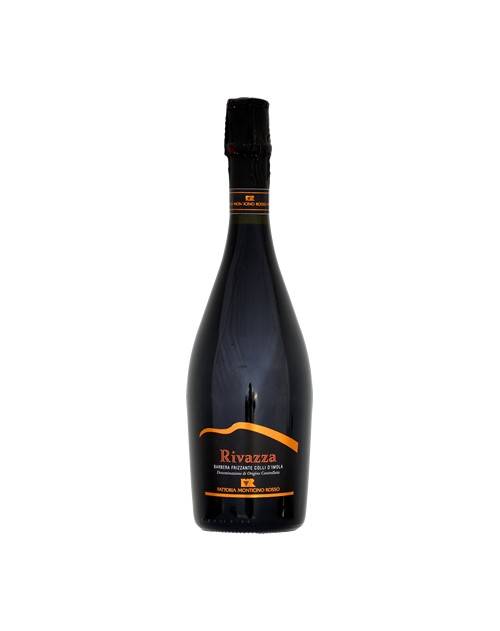 Vino Barbera Frizzante Rivazza Monticino Rosso cl 75 gusto asciutto giustamente tannico ottima con paste asciutte salumi e intingoli saporiti ideale con la salama da sugo.
