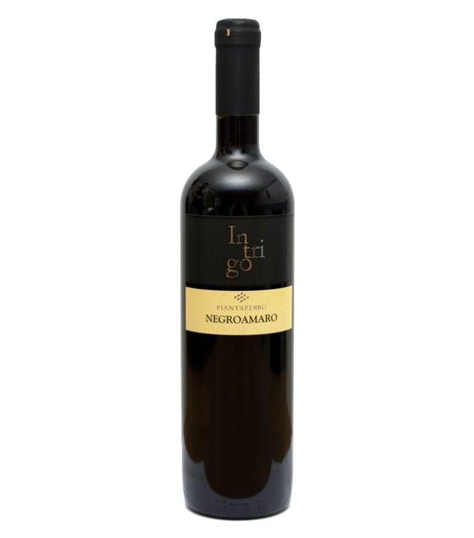 Vino Negroamaro Intrigo Piantaferro cl 75 impronta tannica decisa vellutata persistente asciutta adatto a orecchiette al pomodoro e ricotta forte e piatti di carne in genere formaggi stagionati