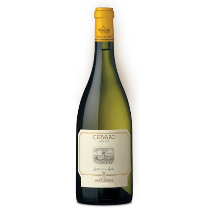 Vino Cervaro della Sala Antinori cl 75 gusto con note minerali e saline persistenti destinato ad un'ottima evoluzione da abbinare a ravioli di gamberi ai funghi porcini e linguine al ragù di mare