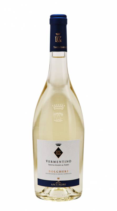 Vino Vermentino Bolgheri Guado al Tasso doc cl 75 sapore delicato con piacevole mineralità morbida ed armonica adatto come aperitivo e ad antipasti e minestre leggere di pesce