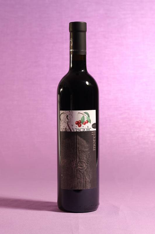 Vino Visciole Morello Cantine di Castignano cl 50 con importante sentore di amarena con note di banana e cacao speziato con retrogusto di mandorla amara ottimo con crostate dolci secchi e cioccololato fondente