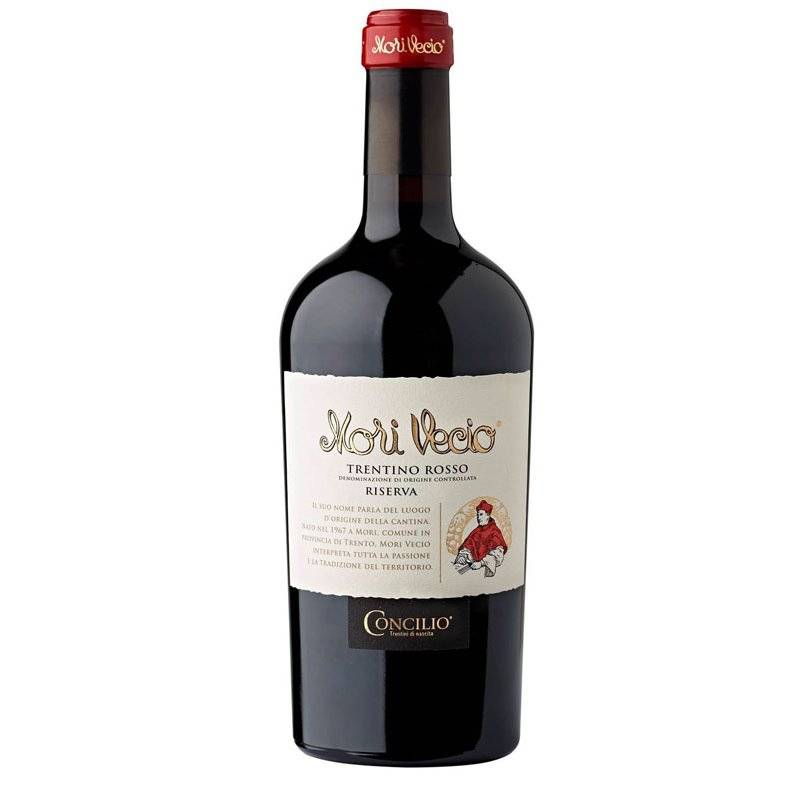 Vino Mori Vecio Doc Riserva Concilio cl 75 dai vitigni Merlot Cabernet Franc e Cabenet Sauvignon affinamento in botti di rovere francese profumato morbido e di struttura ottimo con arrosti spezzatini e formaggi