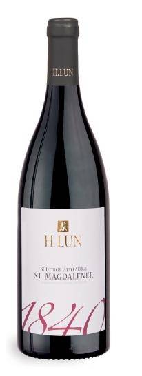 Vino St. Magdalener Alto Adige H. Lun cl 75 gusto pieno vellutato con sentori di mandorle adatto a salame würstel pancetta affumicata pasticcio di maccheroni minestra d’orzo