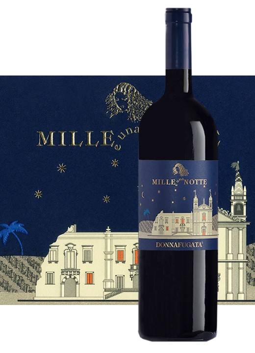 vino Mille e una Notte Donna Fugata cl 75 gusto ampio con sentori di frutti neri grande struttura e morbido tannino matura in barrique ideale con carni rosse e agnello