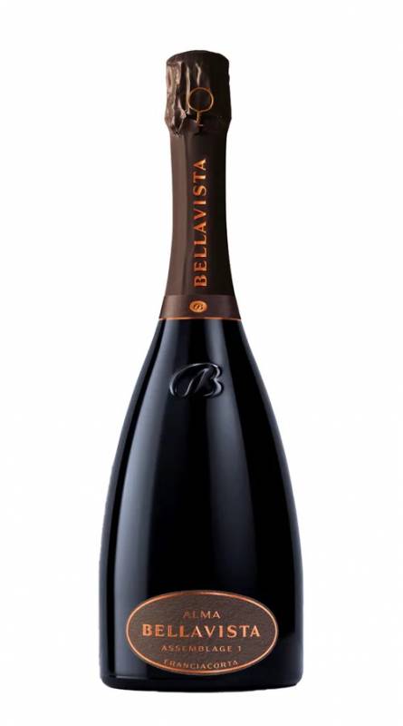 Bellavista Alma Assemblage extra Brut cl 75 dal perlage fine e fitto al naso profumi di fiori bianchi, note di erbe aromatiche, tocchi agrumati e di lievito, accenni di vaniglia; al palato è fresco, con una nota sapida nel persistente finale