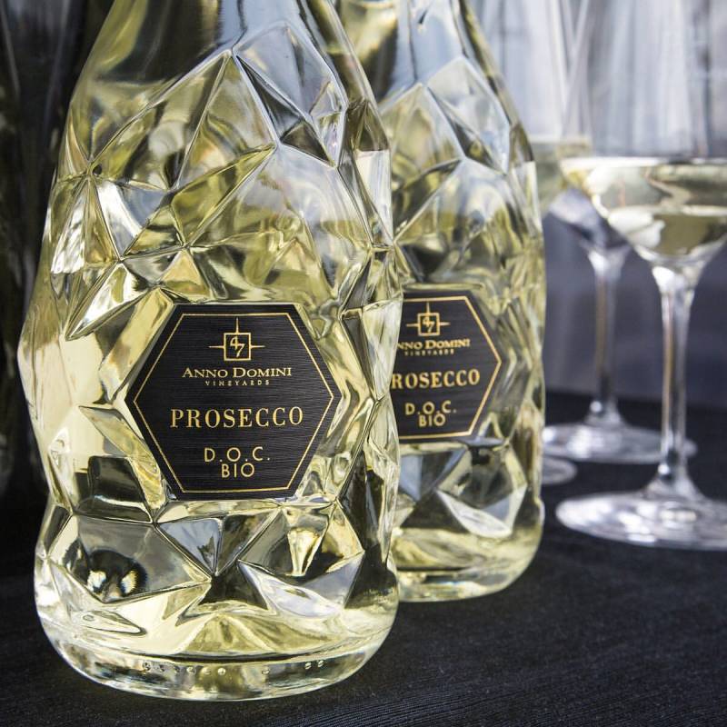 Prosecco Diamante Bio Anno Domini Millesimato extradry cl 75 dall'originale bottiglia gusto dalle note fruttate e floreali persistenti al palato ottimo come aperitivo ma anche a tutto pasto