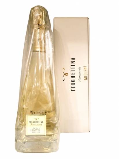 Ferghettina Franciacorta Milledì cl 375 da uve 100% Chardonnay 80 mesi sui lieviti Colore giallo paglierino con riflessi oro verde perlage fine e persistente al gusto note agrumate e minerali