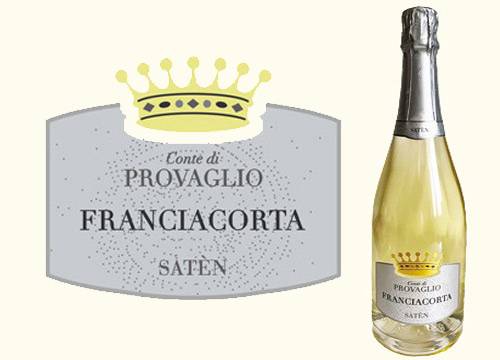 Conte di Provaglio Saten cl 75 Franciacorta da uve Chardonnay in purezza matura 36 mesi sui lieviti sapore fresco sapido e cremoso ottimo aperitivo ed a tutto pasto