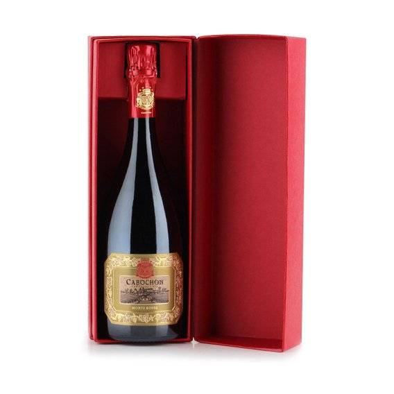 Monterossa Cabochon Brut Fuoriserie 3 litri in cassa legno selezione attenta dei cru della collina di Monte Rossa con la prima fermentazione del mosto in barrique bollicine piene con cenni di frutta gialla finale cremoso e salino