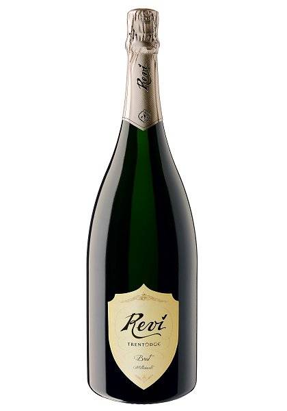 Revì Brut Trento Doc cl 150 con astuccio da uve Chardonnay e Pinot Nero con 3 anni permanenza sui lieviti per una perfetta armonia di aromi fruttati e floreali eclettivo aperitivo e vino da pasto
